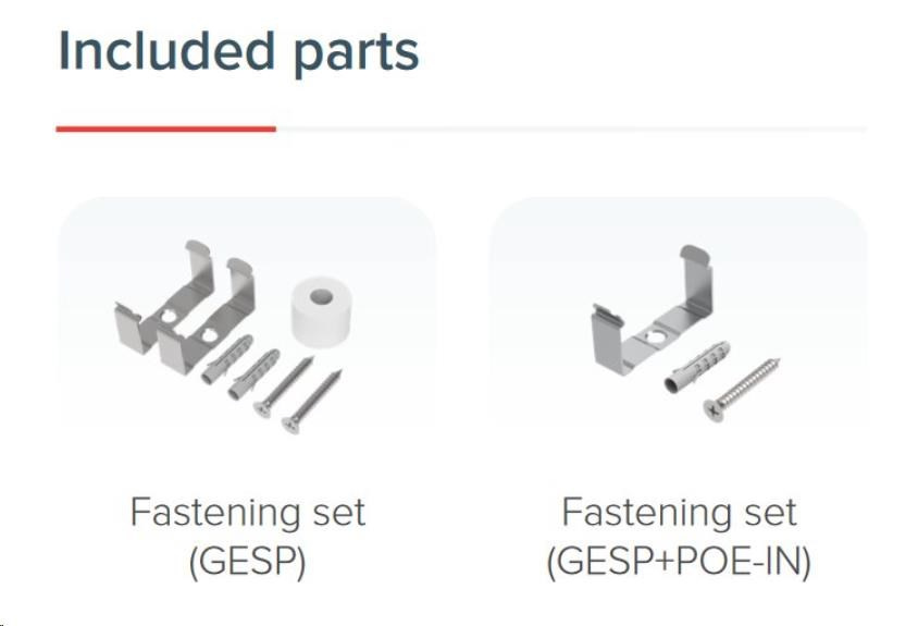 Součástí balení je kromě samotné přepěťovky také hmoždinka se šroubkem a speciálním kovovým plíškem pro přichycení na zeď nebo do racku.