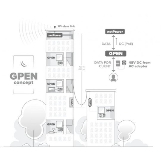The GPEN21 is a smart power injector that serves as an advanced software controlled repeater. Not only can it power your uplink devices via PoE, it can also provide a range of useful software features: Interface management and monitoring