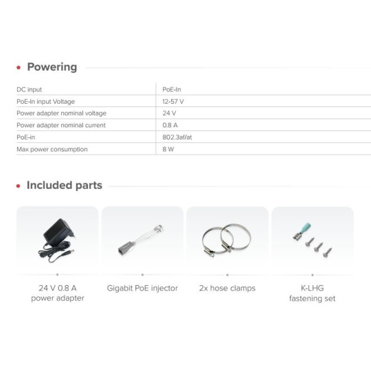 Extra výkonný venkovní aktivní prvek pro připojení k LTE na dlouhé vzdálenosti či odloučených lokalitách se slabým pokrytím signálem. LHGG LTE7 kit je navržena pro spolehlivý přístup k internetu „na poslední míli“ ve vzdálených lokalitách. Namontujte ji venku na sloup nebo stožár a připojte se i tam, kde mobilní telefony selhávají. Je vybavena směrovou anténou s vysokým ziskem 17dBi a modemem CAT7 LTE s rychlostí nahrávání až 100 Mbps, což zajišťuje vyšší výkon a lepší odezvu ve venkovských oblastech. Díky dvojnásobné kapacitě uplinku je vhodnější pro video dohled, VPN, práci na dálku a nasazení ve venkovských oblastech s více uživateli. Lehká mřížková konstrukce antény snižuje zatížení větrem a zároveň zachovává vysoký zisk. Lze ji montovat různými způsoby, včetně stožárů a sloupů. Odolný kryt a provozní teplotní rozsah od -40 °C do +70 °C zajišťují spolehlivý výkon v náročných klimatických podmínkách. Robustní chladič udržuje systém stabilní i při nepřetržitém zatížení. Hlavní funkce a vlastnosti: • VYSOKORYCHLOSTNÍ INTERNET I V ODLEHLÝCH LOKALITÁCH • RYCHLÝ MODEM CAT6 LTE • MODERNÍ DVOUJÁDROVÝ PROCESOR ARM • GIGABITOVÝ ETHERNET SE VSTUPEM POE-IN • PODPORA PÁSMA B28 • VELKÁ ANTÉNA S VYSOKÝM ZISKEM • MŘÍŽKOVÁ KONSTRUKCE ANTÉNY PRO NEJEXTRÉMNĚJŠÍ METEO PODMÍNKY RouterOS Mikrotik plně podporuje sítě IPv6 Technické specifikace: Product code: LHGGR&R11e-LTE7 CPU: Dual-core 88F3720 800 MHz CPU architecture: ARM 64bit Size of RAM 256 MB RAM type: DDR3L Storage: 16 MB Flash Number of 1G Ethernet ports: 1 MiniPCIe slots: 1 LTE modem: R11e-LTE7 TAC: 35312597 LTE Category: 7 (DL: 300 Mbps; UL: 100 Mbps) MIMO DL: 2x2 MIMO UL: 1x1 LTE FDD bands: 1 (2100 MHz) / 3 (1800 MHz) / 5 (850 MHz) / 7 (2600 MHz) / 8 (900 MHz) / 20 (800 MHz) / 28 (700 MHz) / 32 (1500 MHz) LTE TDD bands: 38 (2600 MHz) / 40 (2300 MHz) / 41 (2500 MHz) 3G Category: R8 (DL: 42.2 Mbps; UL: 5.76 Mbps) 3G bands: 1 (2100 MHz) / 3 (1800 MHz) / 5 (850 MHz) / 8 (900 MHz) Dimensions: 391 x 391 x 227 mm Operating system: RouterOS v7, License level 3 Operating temperature: -40°C to +70°C Napájení: DC input: PoE-In PoE-In input Voltage: 12-57 V Power adapter nominal voltage: 24 V Power adapter nominal current: 0.8 A PoE-in: 802.3af/at Max power consumption: 8 W.