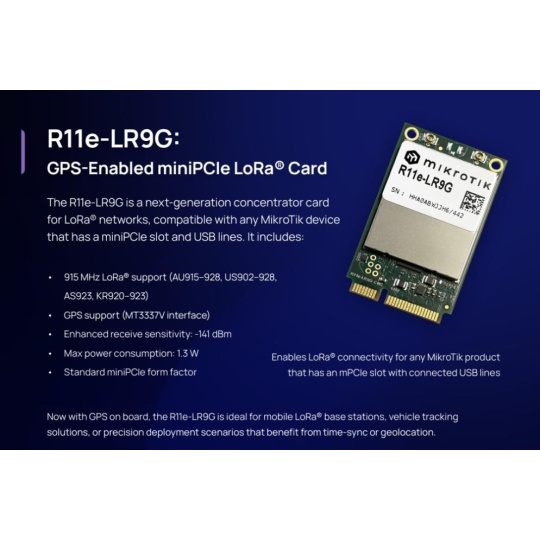 MikroTik R11e-LR9G miniPCIe LoRa® adaptér s GPS