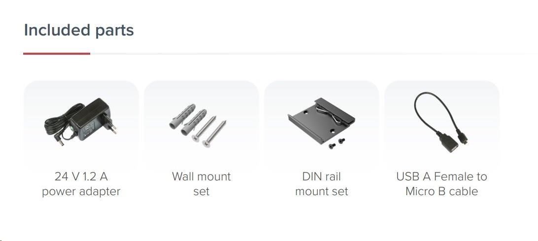 - Široká škála napájení: DC konektor, PoE, Micro USB