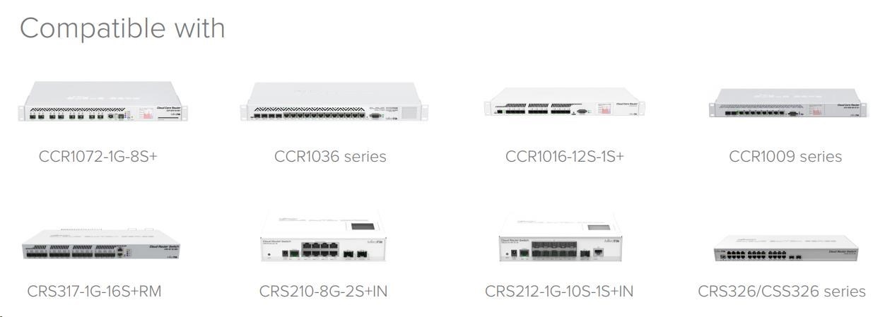 S+RJ10 je unikátní SFP+ modul, který dokáže komunikovat rychlostí 10Mbps až 10Gbps po ethernetovém kabelu. Zajímavou vlastností je schopnost 1Gbps linku až na vzdálenost 200m při instalaci mezi 2 stejné S+RJ10 moduly.