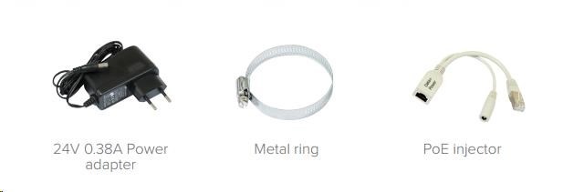 Balení obsahuje: SXTsq Lite5, PoE injektor, napájecí zdroj, montážní sada na stožár