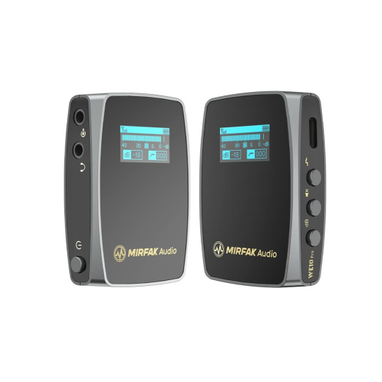 Mirfak Audio WE10 Pro je kompaktní bezdrátový mikrofonní systém, který je ideální pro tvorbu obsahu, filmování, jevištní prezentace, vlogování, YouTube videa, živé vysílání atd. Díky jeho malým rozměrům ho sbalíte do tašky nebo kapsy a je připraven k nahrávání během chvilky. Přehledná obrazovka přijímače znázorňuje všechna zvolená nastavení, sílu signálu, úroveň baterie a vizualizuje úroveň vstupu z dálkových snímačů.