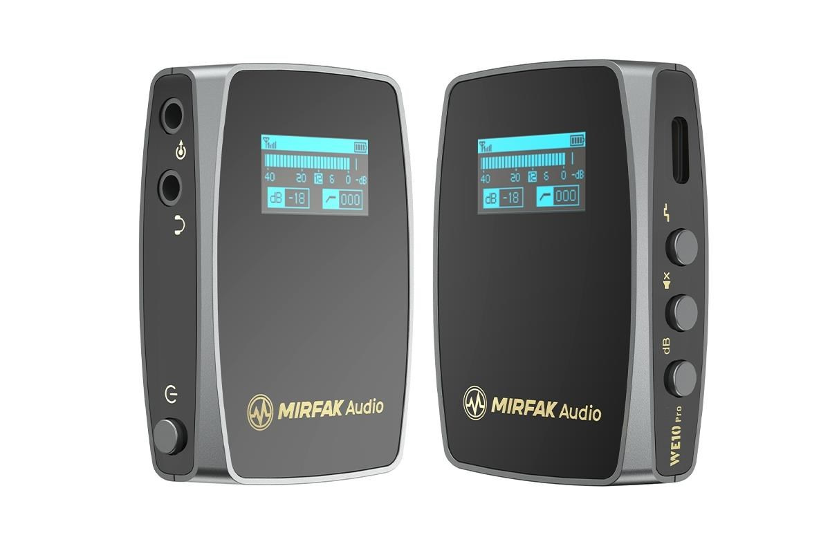 Mirfak Audio WE10 Pro je kompaktní bezdrátový mikrofonní systém, který je ideální pro tvorbu obsahu, filmování, jevištní prezentace, vlogování, YouTube videa, živé vysílání atd. Díky jeho malým rozměrům ho sbalíte do tašky nebo kapsy a je připraven k nahrávání během chvilky. Přehledná obrazovka přijímače znázorňuje všechna zvolená nastavení, sílu signálu, úroveň baterie a vizualizuje úroveň vstupu z dálkových snímačů.