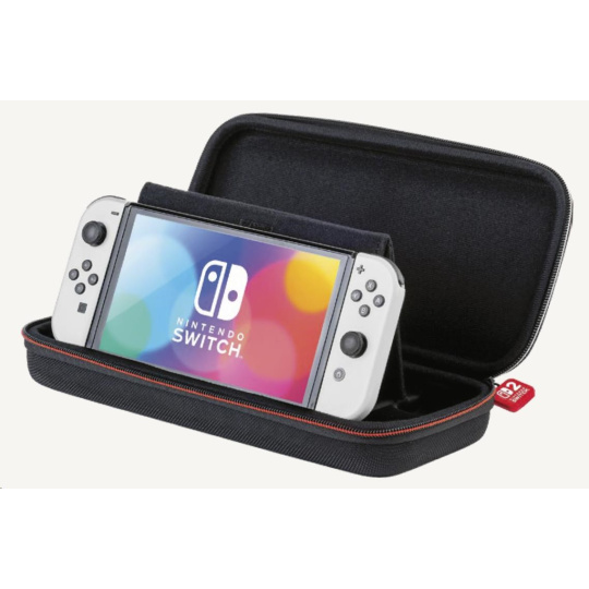 V tomto luxusním přepravním pouzdru od společnosti Nacon můžete bezpečně a pohodlně přenášet nejenom novou herní konzoli Nintendo Switch 2, ale také herní konzoli Nintendo Switch nebo Switch – OLED Model. Ústředním prvkem tohoto pouzdra je nastavitelný stojánek, který při hraní umožňuje pohodlněji sledovat dění na obrazovce, zatímco při přepravě chrání obrazovku i analogové páčky konzole před poškozením. Na jeho vnitřní straně se navíc nachází dvanáct kapsiček pro uložení karet s vašimi oblíbenými hrami. Součástí balení jsou pak také dvě menší plastová pouzdra pro microSD karty.