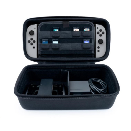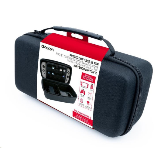 Toto velké ochranné pouzdro od společnosti Nacon navržené na míru herní konzoli Nintendo Switch 2 ocení všichni hráči, kterým nestačí menší přepravní pouzdro určené pro převážení konzole se základním příslušenstvím. Oproti němu nabízí toto větší pouzdro dostatek prostoru nejenom pro konzoli a napájecí adaptér, ale také pro HDMI kabel a držák Joy-Con 2 Grip nebo ovladač Nintendo Switch 2 Pro Controller, případně dvojici dalších ovladačů Joy-Con 2. Vzhledem k větším rozměrům pak toto pouzdro obsahuje také dodatečnou měkkou výstelku, která na cestách ještě lépe ochrání konzoli i veškeré uložené příslušenství. Na spodní straně velkého oddělovače chránícího obrazovku konzole před poškrábáním se navíc nachází rovných deset kapsiček pro uložení karet s vašimi oblíbenými hrami. Pouzdro je zároveň kompatibilní s herními konzolemi Switch, Switch Lite i Switch – OLED Model.
