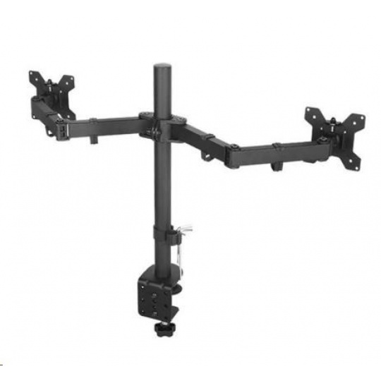 Nejlevnější dvoumonitorový držák ErgoSolid FN40 Levný, přesto vynikající kvality, držák na 2 monitory do kanceláří, školních učeben, firem a podniků - plně nastavitelný, záruka 5 let I vynikající držák může být levný - nabízíme Vám za bezkonkurenční cenu stolní dvoumonitorový držák pro monitory 13-29" s nastavením vdzálenosti, výšky, náklonu, otáčením do stran a funkcí pivot (otočení monitoru na šířku nebo na výšku). Držák má velmi pevnou spolehlivou konstrukci z ocely. Dodáván je v černém provedení a v balení naleznete krom instalačního materiálu i 2 typy úchytů na stolovou desku (na okraj stolu pomocí svěráku a do prostoru stolu pomocí šroubovice - nutné vyvrtání 1 otvoru o průměru 8mm). Na držák poskytujeme záruku 5 let. Ergosolid FN40 - precizní držák na 2 monitory za nejlepší cenu - nastavení 3D, záruka 5 let - držák do kanceláře, do školy, učebny, firmy nebo podniku Za kvalitu držáku plně ručíme, nebudete-li spokojeni, můžete nám zboží vrátit během 30-ti dní od zakoupení. Tato záruka platí i v případě nákupu na IČO. Nejlevnější dvoumonitorový držák - zavěšení 2 monitorů, nastavení 3D, TOP kvalita za bezkonkurenční cenu - držáky Ergosolid FN40 Technické údaje: celková nosnost 20kg maximální hmotnost 1 monitoru 10kg podporuje VESA standardy 75x75 a 100x100 univerzální, vhodný pro zavěšení monitorů s úhlopříčkou 13 až 29 palců nezávislé nastavení každého monitoru otáčení do stran +/- 180° náklon +/- 45° fukce PIVOT - otočení monitoru na šířku nebo na výšku nastavení vzdálenosti monitoru od úchytu délka ramene 367mm 3 klouby pro nastavení pozice na každém rameni nastavitelná výška ramen max. 430mm uchycení na stolové desky o průměru 10mm až 100mm balení obsahuje 2 typy uchycení na stolové desky (svěrák + šroubovice) materiál ocel barevné provedení černé balení obsahuje instalační materiál instalační návod v CZ záruka 5 let Cenově nejvýhodnější dvoumonitorový držák s 3D nastavením polohy monitoru. Bezpečná a spolehlivá konstrukce, 2 typy uchycení na stolové desky o průměru 10-100mm. Držák podporuje VESA standardy pro uchycení monitoru: VESA 75x75 VESA 100x100.