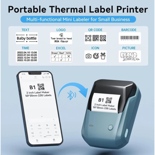 Zapomeňte na zdlouhavé a komplikované procesy tisku etiket. S NIIMBOT B1 je tisk etiket hračkou díky její bezdrátové technologii a vynikajícím funkcím. Tato přenosná tiskárna etiket je vybavena dobíjecí lithiovou baterií, která vám umožní tisknout kdekoli a kdykoli budete potřebovat po dobu 4 až 5 hodin. S NIIMBOT B1 můžete jednoduše označovat věci v kanceláři, škole, obchodě a na mnoho dalších místech. Její kompatibilita s PC a se systémy Android a iOS znamená, že můžete tisknout přímo ze svého smartphonu nebo tabletu, což zajišťuje maximální pohodlí a efektivitu.