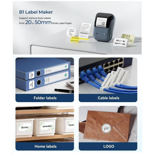 NIIMBOT B1 je tiskárna etiket, která kombinuje výkon, pohodlí a kvalitu. S její jednoduchou obsluhou a vynikajícími funkcemi vás překvapí, jak rychle a snadno můžete vytvářet profesionální etikety.