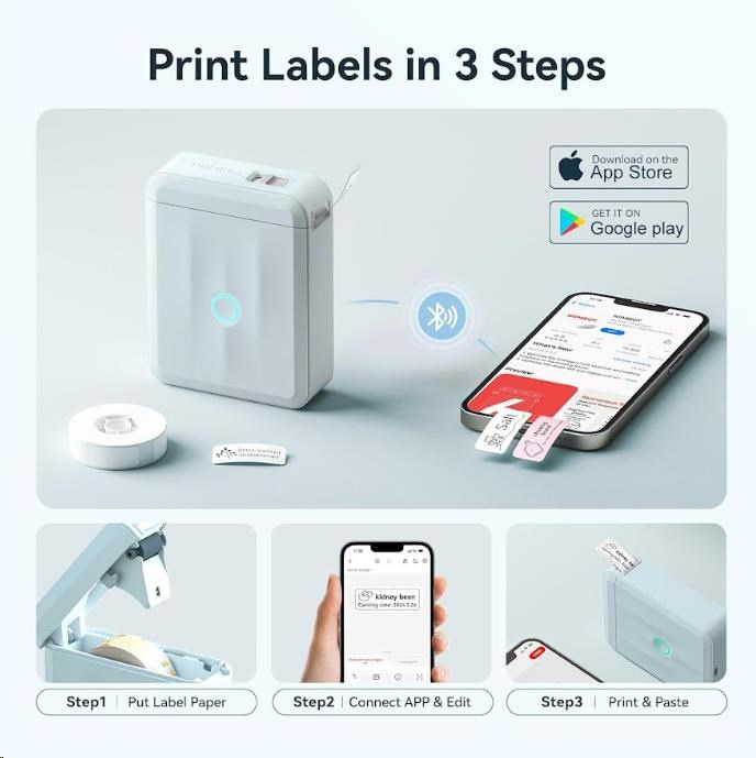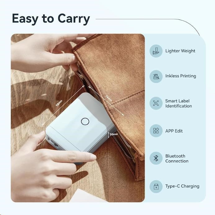 Zapomeňte na zdlouhavé a komplikované procesy tisku etiket. S inovovanou tiskárnou štítků NIIMBOT D110-M je tisk etiket hračkou. Díky Bluetooth připojení a lithiovému akumulátoru můžete polepovat bez omezení až 4 hodiny. S NIIMBOT D110-M můžete jednoduše označovat věci v kanceláři, škole, obchodě a na mnoho dalších místech. Její kompatibilita se systémy Android a iOS znamená, že můžete tisknout přímo ze svého smartphonu nebo tabletu, což zajišťuje maximální pohodlí a efektivitu.