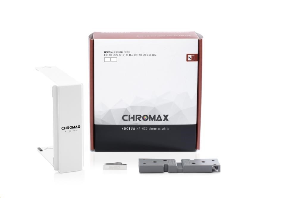 Chladičový kryt NA-HC2 chromax.white je přídavné příslušenství pro oceňované chladiče CPU Noctua NH-U12S, NH-U12S TR4-SP3, NH-U12S SE-AM4 a NH-U12S DX-3647. Vyrobeno z vysoce kvalitního hliníku s bílou práškovou povrchovou úpravou, umožňuje uživatelům dát chladiči elegantní sněhobílý vzhled, který se skvěle hodí do celobílých nebo černobílých sestav. Díky snadné a přímočaré instalaci trvá změna vzhledu chladiče NH-U12S jen několik minut a nevyžaduje ani jeho odpojení od CPU. V kombinaci s edicí chromax.black.swap NF-F12, ventilátory a jejich bílými antivibračními podložkami vám NA-HC2 chromax.white dává možnost proměnit váš NH-U12S v černobílý výkonný stroj, který vypadá stejně skvěle, jako chladí.