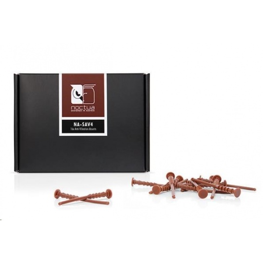 Tyto šrouby nahrazují standardní šrouby pro uchycení ventilátorů a mají anitvibrační efekt. Specifický design umožňuje pohodlnější instalaci v prostorově omezeném prostředí počítače a díky použití vysoce kvalitní gumy jsou tyto úchyty výjimečně jemné a zároveň odolné proti vytržení. Výměnou standardních šroubů za NA-SAV4 úchyty můžete výrazně snížit hluk způsobený vibracemi.