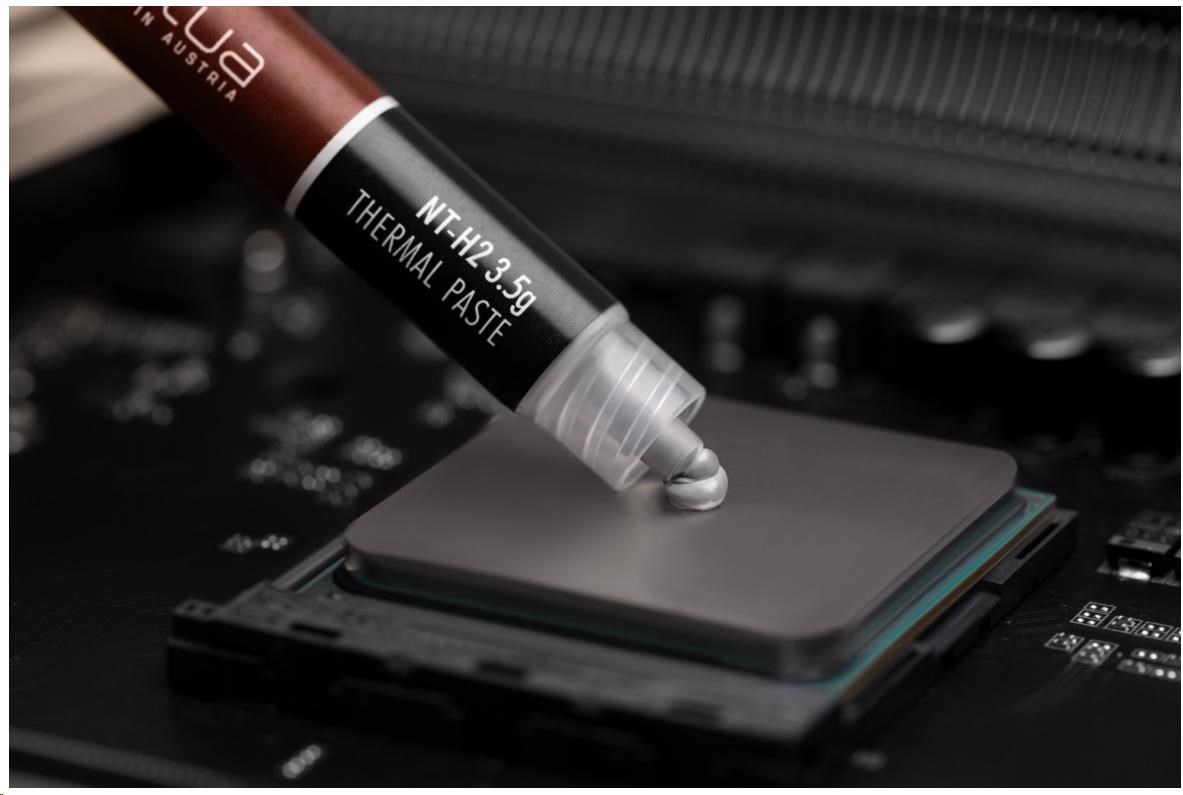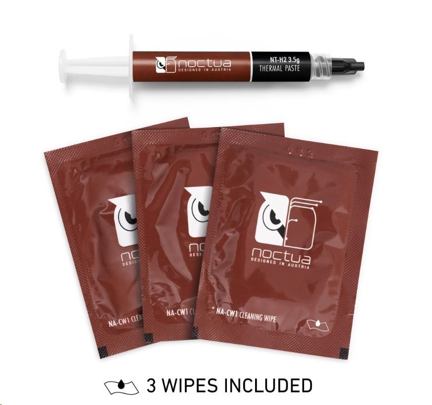 NT-H2 je dále vylepšená druhá generace oceněného hybridního tepelného vedení Noctua. Kombinací osvědčených vlastností ikonické pasty NT-H1, vynikající snadnosti použití a proslulé dlouhodobé stability s novým, jemně vyladěným složením mikročástic pro ještě lepší tepelný výkon je NT-H2 pastou pro nadšence pro nejvyšší nároky. Ať už jde o vzduchové nebo vodní chlazení, aplikace pro CPU nebo GPU, přetaktování nebo tiché systémy: NT-H2 bude důsledně poskytovat vynikající výsledky a díky přiloženým čisticím ubrouskům se stejně snadno odstraňuje jako nanáší.
