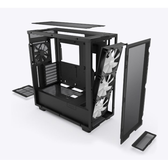 NZXT skříň H7 Flow RGB edition / ATX / 3x 140 mm fan / USB-C / 2x USB / prosklená bočnice / mesh panel / RGB / černá