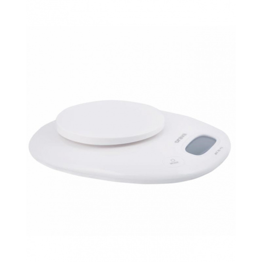 Digitální kuchyňská váha,, Miska s objemem 1 l, ,Velký LCD displej,, Váživost do 5 000 g (přesnost 1 g),, Měření objemu vody a mléka (ml / cup),, Vážení hmotnosti (g / oz),, Funkce dovažování / nulování TARE,, Velké dotyková tlačítka pro pohodlné ovládání, , Automatické vypnutí při nečinnosti,, Indikace slabé baterie a přetížení, , Napájení: 1 x 3 V CR2032.