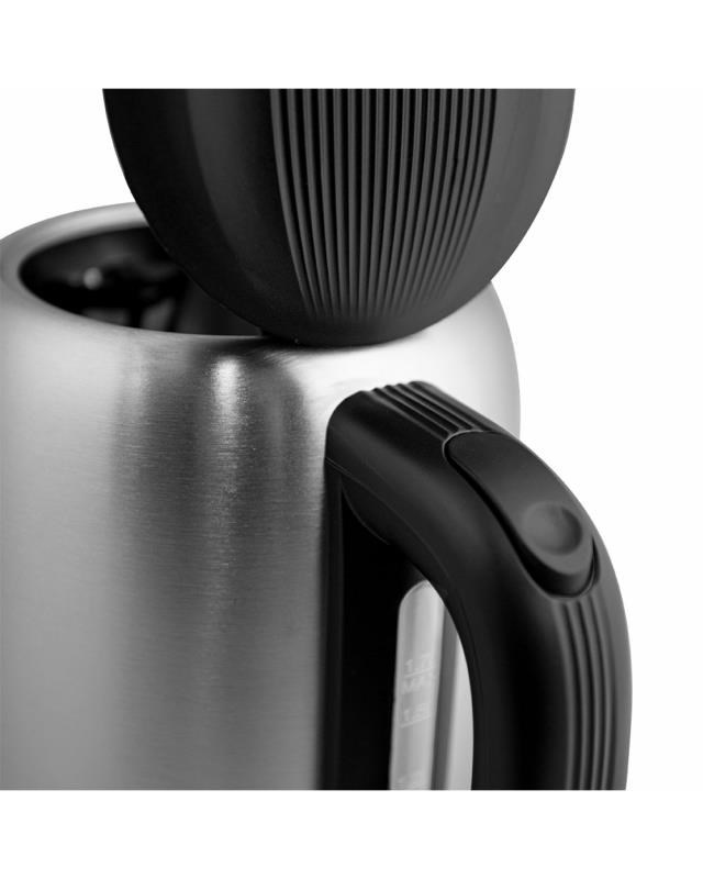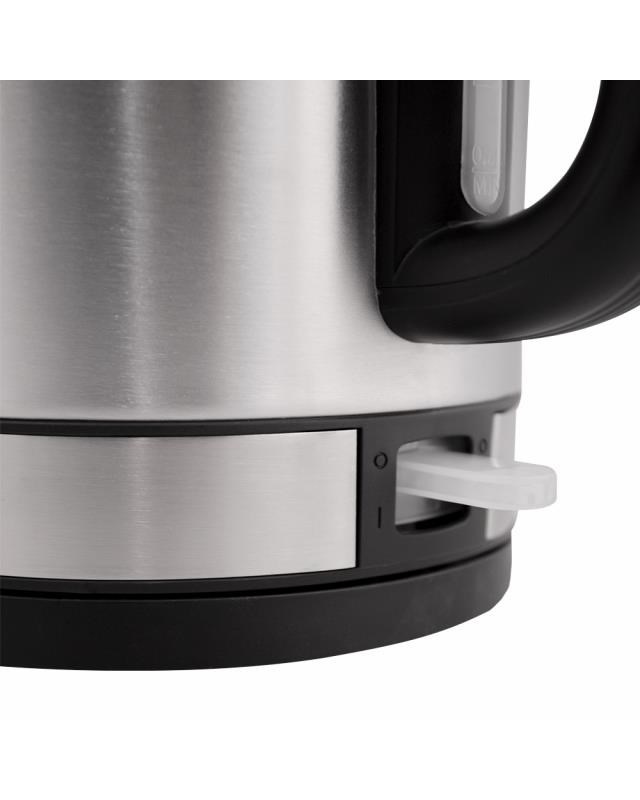 Automatická varná konvice, nerezová, Objem vody: max. 1,7 l, Napájení: 220 - 240V ~ 50/60 Hz, 1 850 - 2 200W, VDE zástrčka, Varná nádoba na odnímatelném 360 ° otočném podstavci, Topné těleso překryté deskou z ušlechtilé oceli, automatické vypnutí, Ochrana před ohřevem bez vody, ukazatel napájení, S indikátorem hladiny vody.