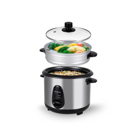 "Multifunkční hrnec. Jednoduché ovládání a rychlé vaření. Plně automatický provoz. Objem 1,5 l (pro přípravu 450 g rýže). Vhodný pro přípravu všech druhů rýže včetně rýže na sushi. Pařák pro šetrné a zdravé vaření ryb, zeleniny, případně pro ohřev dalších potravin. Světelná signalizace provozu a udržování teploty. Funkce Keep Warm uchová rýži teplou a čerstvou až 6 hodin. Jednoduché čištění, vyjímatelná vnitřní nádoba s nepřilnavým povrchem. Skleněná poklice s otvorem pro únik přebytečné páry. Dodávané příslušenství: špachtle na rýži, odměrka na rýži a vodu. Praktické rukojeti na obou stranách Protiskluzové nožičky. Napájení: 220 – 240 V~ 50 – 60 Hz, 500 W".