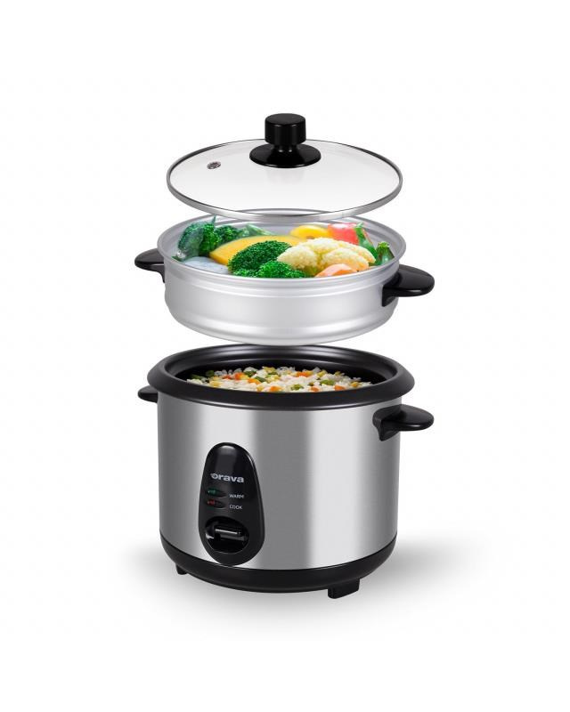 "Multifunkční hrnec. Jednoduché ovládání a rychlé vaření. Plně automatický provoz. Objem 1,5 l (pro přípravu 450 g rýže). Vhodný pro přípravu všech druhů rýže včetně rýže na sushi. Pařák pro šetrné a zdravé vaření ryb, zeleniny, případně pro ohřev dalších potravin. Světelná signalizace provozu a udržování teploty. Funkce Keep Warm uchová rýži teplou a čerstvou až 6 hodin. Jednoduché čištění, vyjímatelná vnitřní nádoba s nepřilnavým povrchem. Skleněná poklice s otvorem pro únik přebytečné páry. Dodávané příslušenství: špachtle na rýži, odměrka na rýži a vodu. Praktické rukojeti na obou stranách Protiskluzové nožičky. Napájení: 220 – 240 V~ 50 – 60 Hz, 500 W".