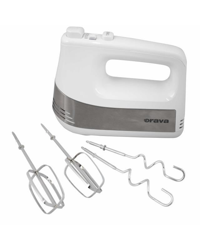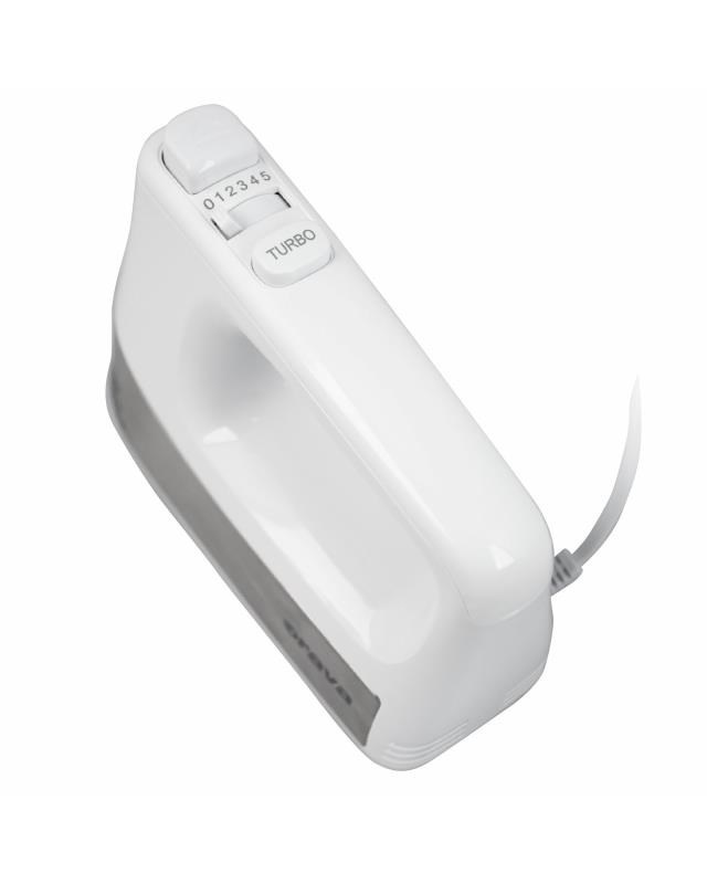 Elektrický ruční šlehač, vysokovýkonný motor, 5 rychlosti a funkce TURBO, 2 funkce: šlehání, míchání, Háky na míchání a metly na šlehání jsou vyrobené z ušlechtilé oceli, Napájení: 220 - 240V ~ 50 / 60Hz, 500 W.
