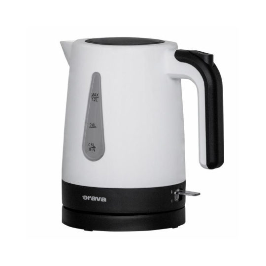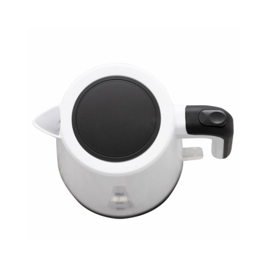 "Elektrická varná konvice. Objem vody Max. 1,2l. Varná nádoba na odnímatelném 360° otočném podstavci. Topné těleso překryté plotnou z ušlechtilé oceli. Ochrana před ohřevem bez vody. Automatické vypnutí. Síťová šňůra odkladatelná v podstavci. Napájení: 220 - 240V~ 50/60Hz, 1 200 W".