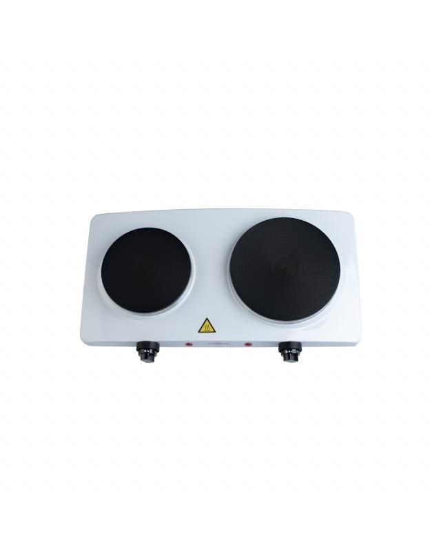 "Elektrický vařič se dvěma plotýnkami 185mm a 155mm topné desky. Plynulá regulace ohřevu. Světelná signalizace ohřevu. Ochrana proti přehřátí Napájení: 220 - 240V~ 50/60Hz, 2 500 W".
