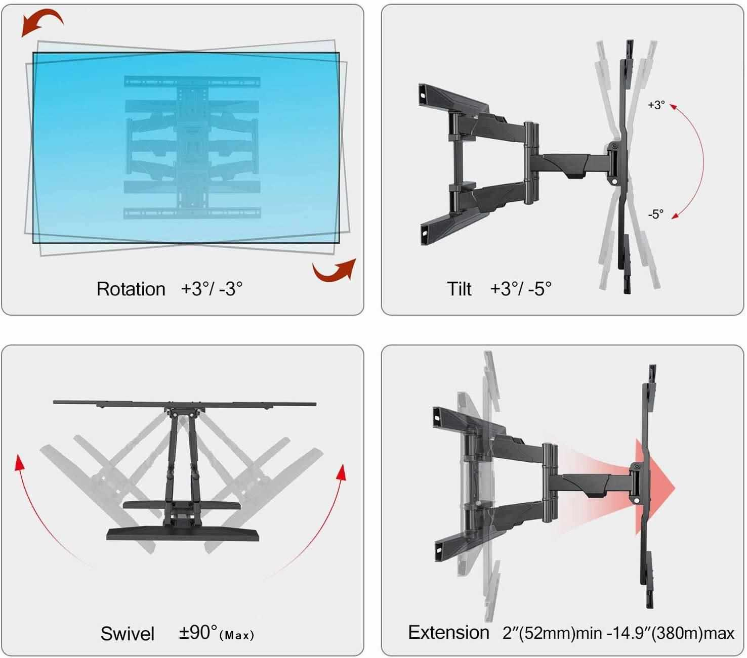 Kvalitní držák na Tv NB DF600-P6 Kvalitní polohovatelný držák na Tv 43" až 75", výsuvný 52-380mm, otáčení do stran +/-60°, naklápění +3°/-5°, VESA 200x200 až 600x400, nosnost 45,5kg Otáčecí držák televize, snadná instalace na stěnu, velmi kvalitní spolehlivá konstrukce. Držák Tv NB DF600-P6 je ideální na televize s hmotností do 45kg a VESA standardy od 200x200 do 600x400, velikost Tv by měla být ideálně v rozmezí 43" až 75". Možnost vysouvání Tv od zdi do vzdálenosti až 38cm a mírného naklápění Tv +3° až -5° a otáčení do stran až +/- 60°. V případě nerovností na zdi je možné rovinu televize upravit +/- 4°. Barevné provedení černé, balení včetně instalačního materiálu, záruka 5 let. Vynikající nástěnný držák pro otáčení televize NB DF600-P6 Technické údaje: nosnost držáku 45,5kg ideální na Tv s úhlopříčkou 43" až 75" podpora VESA standardů 200x200 až 600x400 nastavení vzdálenosti od zdi 52 až 380mm otáčení Tv do stran až +/- 60° možnost naklápění Tv +3° až -5° regulace roviny obrazovky +/- 4° úchytky na kabeláž dizajnové krytky nástěnného úchytu špičková, velmi pevná a spolehlivá konstrukce materiál ocel záruka 5 let Široká škála polohování televize na držáku Tv NB DF600-P6 Držák DF600-P6 podporuje VESA standardy: VESA 100x200 VESA 200x200 VESA 300x200 a 200x300 VESA 300x300 VESA 400x200 a 200x400 VESA 400x300 a 300x400 VESA 400x400 VESA 600x400 Výborný držák se spolehlivou konstrukcí bez vůlí a bezúdržbovým provedením čepů v kloubech držáku. Držák DF600-P6 je vhodný na veškeré televize s hmotností do 45,5kg, které podporují kterýkoli z výše uvedených VESA standardů..