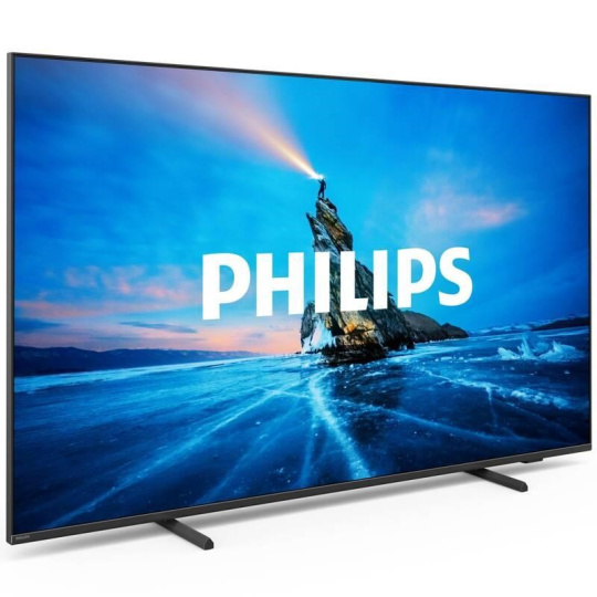 65" (164 cm) 4K Ultra HD Smart TV, rozlišení 3840 × 2160 px, technologie Philips P5 Perfect Picture, Quantum Dot Mini-LED, DVB-T2/C/S2 tuner, kodek HEVC (H.265) – nový digitální standard, Dolby Atmos, 3× HDMI 2.0, 2× USB 2.0, Wi-Fi, Bluetooth 5.0, LAN, Cl slot, operační systém Google TV.
