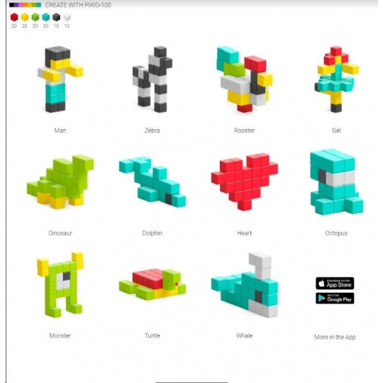 DESIGNOVÁ ŘADA PIXIO-100 obsahuje 100 bloků PIXIO v šesti dokonale spárovaných barvách, které