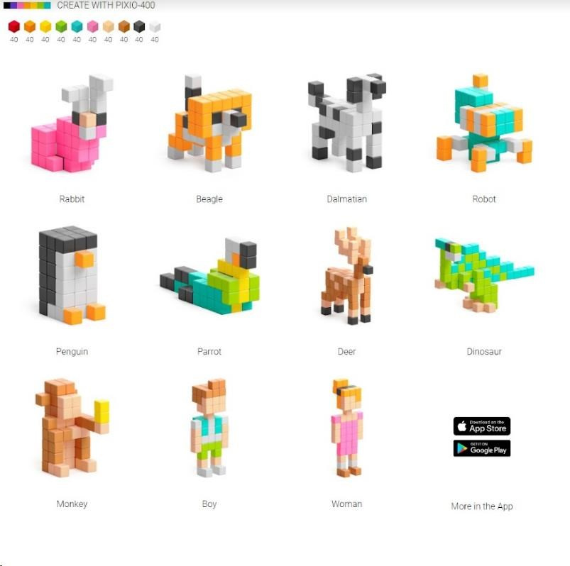 DESIGNOVÁ ŘADA PIXIO-400 obsahuje 400 bloků PIXIO v deseti dokonale spárovaných barvách,
