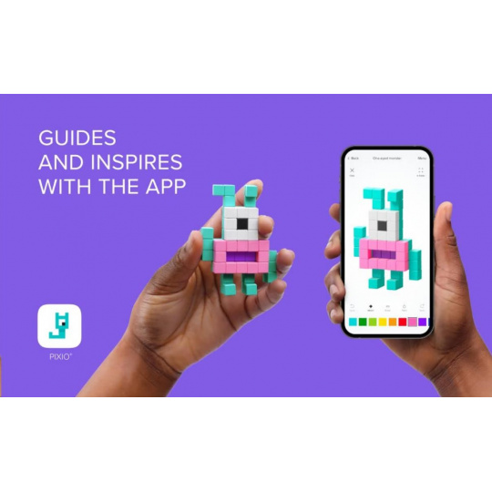 V každém balení produktů PIXIO je zdarma kód, který umožňuje přístup k exkluzivnímu obsahu aplikace. Stáhněte si aplikaci z Google Play nebo APP Store a prozkoumejte více než 1000 nápadů, jak tvořit pixelové objekty a 3D obrazce.