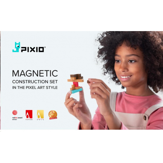 Každý z magnetických bloků PIXIO je kostka o velikosti 8x8x8mm. Uvnitř je 6 malých magnetů vážících méně než 1 g. Chytrý a unikátní design magnetů dávají nekonečné možnosti skládaní obrazců – neexistuje špatný postup, jak stavět a tvořit, protože jde jenom o kreativitu, představivost a šikovnost tvůrce. Všechny modely PIXIO jsou mezi sebou kompatibilní.
