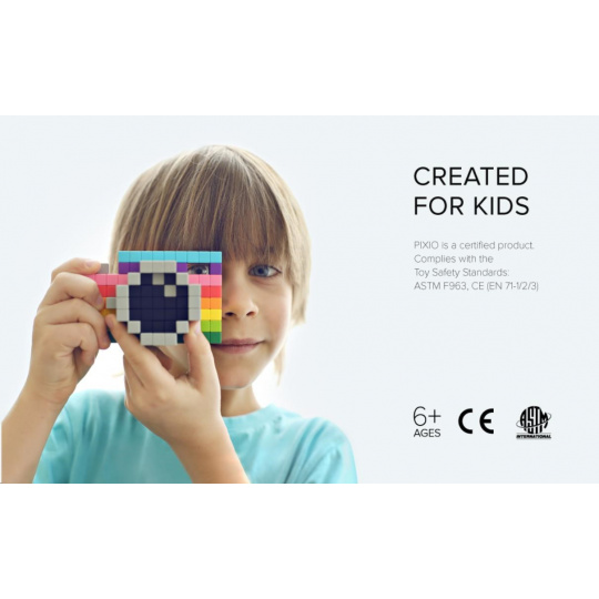 PIXIO je certifikovaný produkt v souladu s bezpečnostními normami CE a ASTM pro hračky. Může být smyslovou interaktivní hračkou pro děti, která pomáhá rozvíjet kreativní uvažování v prostoru a kritické myšlení. Skládaní bloků také pomáhá zlepšovat jemnou motoriku dětí.