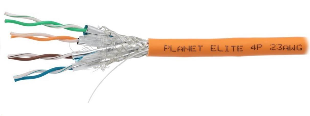 PLANET Elite kabel FTP, drát, Cat 6a, 4pár, 600MHz, LS0H, stíněný každý pár, oranžový, Dca, balení 500m