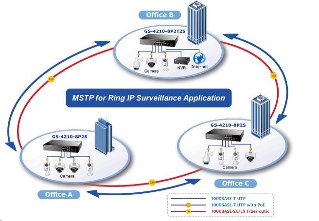 Gigabitový spravovatelný IPv4/IPv6 přepínač s PoE (power over ethernet) porty pro centralizované napájení zařízení po ethernetu jako jsou IP kamery, WiFi prvky nebo VOIP telefony. Zařízení je svým provedením vhodné pro instalaci do kancelářských nebo prezentačních prostorů. Je vhodné i pro aplikace v lokálních rozvaděčích, vzdálené připojení lze realizovat optickými porty SFP. Bezpečnou správu zajistí šifrovaná webová správa nebo SNMP protokol. Připojení koncových uživatelů lze zabezpečit ACL/MAC pravidly nebo možnou autorizací na server RADIUS/TACACS. Vlastnosti: - 8 portů 1000Base-T, Switching, Full Duplex (1000/2000 Mbps), Auto-Negotiation (10/100/1000 Mbps) - metalické porty s vestavěným PoE injektorem 802.3af, každý injektor až 30W/port; celkový max. napájený výkon do 120W - 2x SFP, 100/1000Base-X, pro instalaci optických modulů mini-GBIC s označením MFB a MGB - Auto-MDI/MDI-X, automatická detekce přímý skřížený kabel i pro 10/100Mbps - 8k MAC adres, 4,1Mb buffer - propustnost: 20Gbps sběrnice, datově 14,88Mp/s (64B) - podpora přenosu Jumbo rámců o velikosti 10KB - správa: WEB / SNMPv3 / telnet / konzole, s podporou zabezpečení SSH/SSL - plná podpora protokolů IPv4 a IPv6 - VLAN IEEE 802.1Q, až 256 skupin, až 4094 VLAN ID, protokolové VLAN, VoIP VLAN - agregace portů LACP 802.3ad, až 8 skupin - QoS 8 front, klasifikace podle provozu, váženého průměru, VLAN značky nebo 802.1p příznaku - Spanning tree protokol: STP / RSTP / MSTP - IGMPv3 Snooping, Querier, až 256 multicast skupin - zrcadlení portů-port mirroring: TX / RX / TX+RX / více portů na jeden - zabezpečení klientů: ACL (access control list), MAC statická tabulka pro autorizovaná zařízení, autorizace na RADIUS/TACACS+, DHCP snooping - ochrana proti DoS útokům - tepelná ochrana proti přehřátí - ESD ochrana proti elektrostatice do 2kV DC - rozměry: (330 x 155 x 44,5))mm; hmotnost 1,7kg - provozní teplota: 0-50°C - interní napájecí zdroj AC 100-240V/50-60Hz, vlastní příkon do 30W.