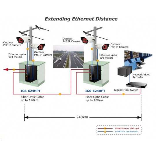 Planet IGS-624HPT, PoE switch 4x 1000Base-T, 2x SFP 100/1000Base-X, 802.3at 120W, DIN,IP30, -40 až +75st.C