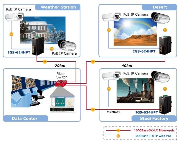Planet IGS-624HPT, PoE switch 4x 1000Base-T, 2x SFP 100/1000Base-X, 802.3at 120W, DIN,IP30, -40 až +75st.C