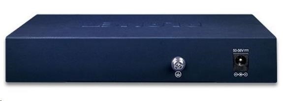 1x vstupní napájecí PoE port (95 W) + 4x injektor, celková zatížitelnost až 65 W (802.3bt PoE++ typ 4 PSE vstup), ESD+EFT ochrana, kovové provedení.