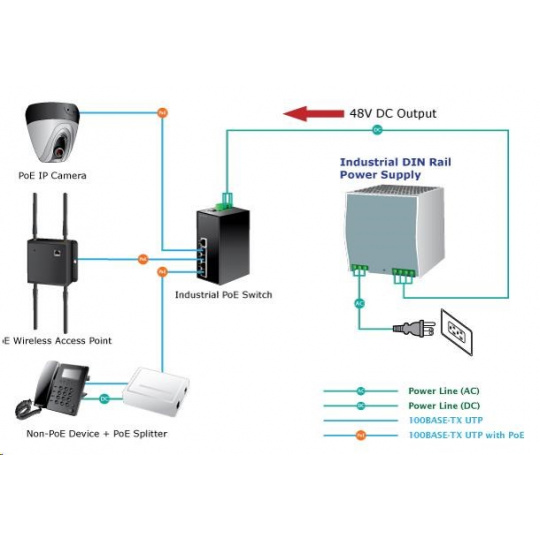 Planet PWR-75-48, Mean Well průmyslový zdroj na DIN lištu, nastavitelný 48-56V DC, 75W