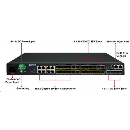 Planet switch SGS-6341-16S8C4XR, Switch, L3, 8x 1000Base-T, 24x 1Gb SFP, 4x 10Gb SFP+, Web/SNMP, ACL, QoS, IGMP,IP stack
