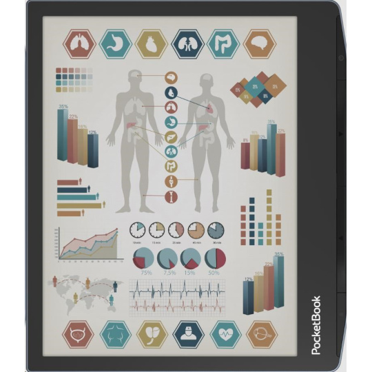 7“ barevná obrazovka, bezpečná pro oči a založená na nejnovější technologii E Ink Kaleido™ 3. O 50 % vyšší rozlišení barevných e-stránek a PPI.