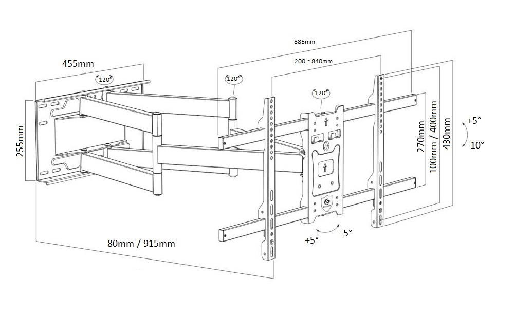 Poctivý držák na televize Ergosolid ONYX-30 Kvalitní nástěnný držák na Tv 43-90", výsuvný 80-915mm, otočný +/-65°, náklon +5°/-10°, korekce roviny +/-5°, VESA 200x100 až 800x400, nosnost 50kg Nástěnný držák poctivé konstrukce pro spolehlivé zavěšení všech typů a značek televizí. Držák Vám umožní televizi nastavit od zdi do vdáleností v rozmezí 80mm až 915mm. Otáčení do stran bude možné minimálně o 60° na každou stranu, náklon je možný v rozmezí +5°až -10°. Pro usnadnění instalace má držák možnost korekce roviny obrazovky až o 5° na každou stranu. Celá konstrukce držáku je vyrobena z poctivé ocely a ani při maximálním vysunutí a maximálním zatížení nevznikají žádné vůle a nedochází k prověšení ramen. Instalační nástěnná plocha s rozměry 455x255mm je dostatečně velká pro spolehlivé uchycení na zeď a výborné rozložení celkové hmotnosti na větší plochu. Držák podporuje VESA standardy 200x100 až 800x400 a zavěsit na něj můžete televize s hmotností až 50kg. Barevné provedení je černé. Na držák poskytujeme záruku 5 let. Nástěnný extra dlouhý výsuvný držák poctivé konstrukce na televize 43-90" Ergosolid ONYX-30 Technické údaje: nosnost 50kg podporuje VESA 200x100 až 800x400 ideální na televize s úhlopříčkou 43" až 90" nastavitelná vzdálenost od zdi 80mm až 915mm otáčení na obě strany až +/- 60° naklápění dolů až o 10° nebo nahoru až o 5° korekce roviny obrazovky až +/- 5° instalační plocha o rozměrech 455x255mm vynikající kvalita ocelová silnostěnná konstrukce instalační materiál je součástí balení barevné provedení černé záruka 5 let Kvalitní konstrukce a opravdu rozsáhlá možnost polohování jsou předností televizního držáku Ergosolid ONYX-30 Tv držák Ergosolid ONYX-30 podporuje tyto VESA standardy: VESA 200x100 VESA 200x200 VESA 300x200 a 200x300 VESA 300x300 VESA 400x200 a 200x400 VESA 400x300 a 300x400 VESA 400x400 VESA 600x400 VESA 800x400 Na televizní držák Ergosolid ONYX-30 můžete zavěsit všechny typy, značky a velikosti televizorů, které mají hmotnost maximálně 50kg a které podporují kterýkoliv z výše uvedených VESA standardů. Univerzální držák na LCD LED plazma OLED QLED televize 43-90" Ergosolid ONYX-30 V balení naleznete tento instalační materiál: šrouby M4x14mm 4ks šrouby M6x14mm 4ks šrouby M6x30mm 4ks šrouby M8x20mm 4ks šrouby M8x45mm 4ks malé distační válečky 4ks velké distanční válečky 4ks univerzální podložky 4ks podložky na šrouby 5ks vruty do hmoždinek 8x60mm 5ks hmoždinky O10x50mm 5ks stahovací pásky na suchý zip 2ks (fixace kabeláže na držáku) Televizní držák poctivé konstrukce a vynikající kvality Ergosolid ONYX-30 dodáváme včetně instalačního materiálu Držáky Tv Ergosolid ONYX-30 poskytují velkou variabilitu polohování obrazovky, vynikající zpracování a naprosto bezpečné zavěšení televizoru za dostupnou cenu. Tyto držáky vydrží opravdu mnoho let bez nutnosti jakýchkoliv oprav a díky univerzálnosti jsou vhodné i v případě zakoupení nové televize. Stanou se součástí Vašeho domova..