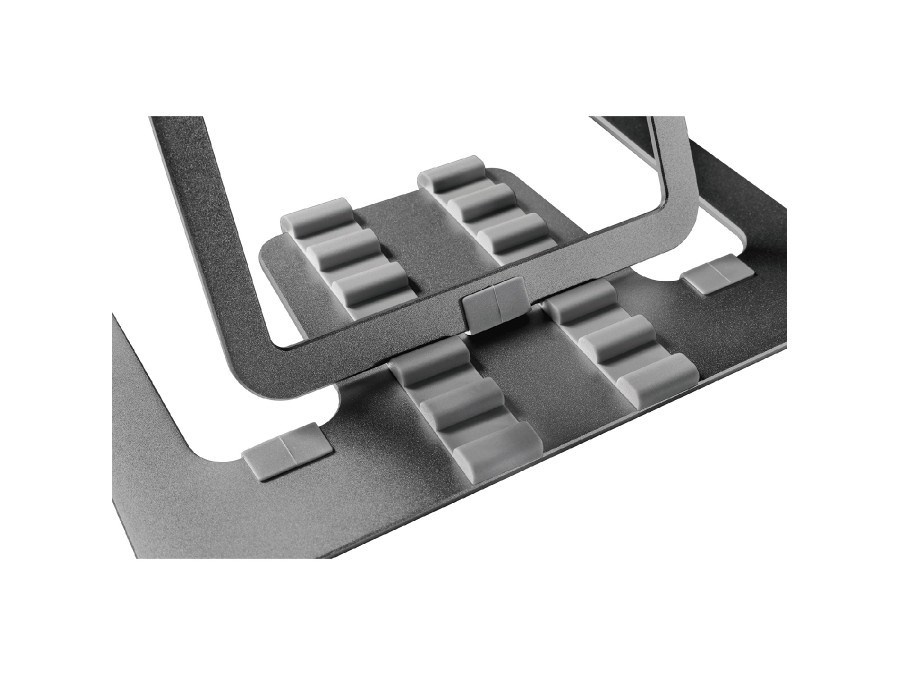 Podstava na notebook laptop Fiber Mounts M4C16G Přenosná hliníková podstava / stojan na notebook nebo laptop 11-15", polohovatelný, nosnost 5kg, barva šedá (do stříbrna) Kvalitní hliníková podstava / stojánek na ergonomické podložení notebooku nebo laptopu s úhlopříčkou 11-15" (běžné velikosti) a 6-ti stupňové polohování 78mm až 124mm pro nastavení nejvhodnějšího úhlu sklonu pro správné držení těla při práci nebo hraní na notebooku nebo laptopu. Podstavec je opatřen protiskluzovými silikonovými podložkami, které zařízení výborně stabilizují a nebrání cirkulaci vzduchu pro spolehlivé chlazení. Hliníkový ergonomický podstavec na notebook Fiber Mounts M4C16G Technické údaje: nosnost 5kg na notebooky a laptopy s úhlopříčkou 11-15" 6 stupňů nastavení výšky 78-124mm protiskluzové silikonové podložky pro spolehlivé zafixování polohy značné zlepšení ergonomie pro pohodlnou práci nebo hraní neomezuje dostatečné chlazení přístroje možnost složení pro snadné přenášení nebo na cesty (235x223x13mm) materiál hliník barevné provedení šedé záruka 5 let Kvalitní hliníková podstava stojánek na notebook pro výrazné zlepšení ergonomie a pohodlí při práci nebo hraní her Fiber Mounts M4C16G Podstava je vhodná pro všechny běžné velikosti notebooků a laptopů od všech výrobců. Doporučená je velikost notebooku 11-15" ale fungoval stejně spolehlivě i při použití na notebooku o velikosti 17,1". Doporučujeme nejen k pracovním účelům ale i při použití notebooku dětmi při hraní her - výrazná úleva pro Vaše záda, protože značně omezuje hrbení se..