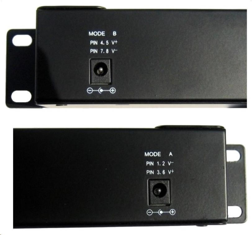 PoE panel pracuje v režimu B: Panel je tedy kompatibilní s aktivními prvky s integrovaným POE injektorem využívajícím k napájení piny 4/5+ a 7/8- (jako např. aktivní prvky MIKROTIK, UBIQUITI).