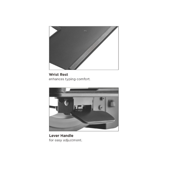 Polička na klávesnici Fiber Mounts M7C95 Plně polohovatelná přídavná polička na klávesnici, rozměry 670x255mm Profesionální plně polohovatelná stolní přídavná polička na klávesnici a myš, která poskytuje skutečné ergonomické řešení pro Vaši nejpohodlnější práci. Nastavení ve všech polohách s aretací. Pokud požadujete to nejlepší a záleží Vám na zdravém pracovním stylu, tuto poličku si zamilujete. Profesionální stolní polička na klávesnici, plně polohovatelná: výsuvná, otočná, sklopná, výškové nastavení 34cm, aretace polohy - Fiber Mounts M7C95 Technické údaje: nosnost 2kg výsuvná 470mm výškové polohování 340mm otáčení +/- 180° rozsah naklápění +15 / -13° rozměry police 670 x 255 snadné schování police s klávesnicí pod stolovou deskou aretace polohy nejvyšší kvalita snadná instalace a ovladatelnost zvýšení komfortu a pracovního výkonu barevné provedení černé záruka 3 roky Precizní velmi snadné polohování poličky na klávesnici Fiber Mounts M7C95 Ušetřete na svém stole spoustu místa - dejte klávesnici a myš na tuto výsuvnou polici a kdykoliv ji můžete uschovat pod slolovou deskou. Police je plně nastavitelná a poskytuje při práci vysoký komfort..