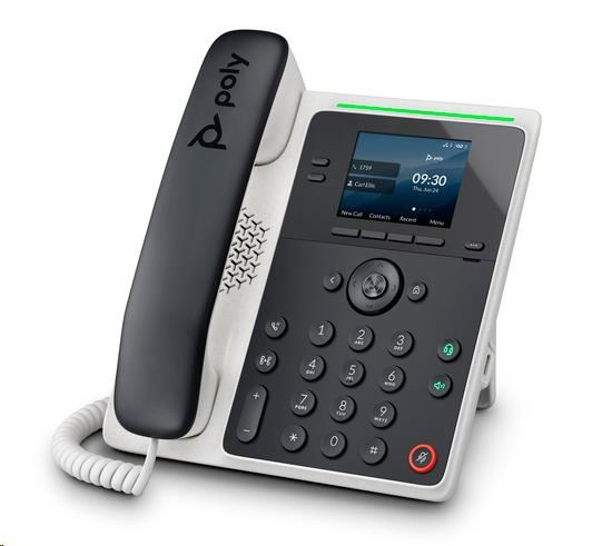 | Audio | Poly HD Voice; Technologie Poly Acoustic Clarity zajišťuje plně duplexní hovory a potlačuje akustickou ozvěnu i okolní šum; Technologie Poly Acoustic Fence potlačuje okolní hluk při použití sluchátka nebo kabelové náhlavní soupravy; Technologie Poly NoiseBlockAI odstraňuje většinu okolního hluku při používání konferenčního reproduktoru; Aplikace Poly Computer Audio Connector nainstalovaná v počítači (pouze Windows) umožňuje vybrat telefon pro zvukový vstup a výstup počítače a použít s počítačovými aplikacemi sluchátko, volitelnou náhlavní soupravu a handsfree hlasitý odposlech; Širokopásmový zvuk TIA-920, v souladu s typem 1 (plně duplexní IEEE 1329); Individuální nastavení hlasitosti s vizuální zpětnou vazbou pro každou zvukovou cestu; Detekce hlasové aktivity; Komfortní tvorba hluku; Generování tónů DTMF (RFC 2833 a v pásmu); Přenos zvukových paketů s nízkým zpožděním |