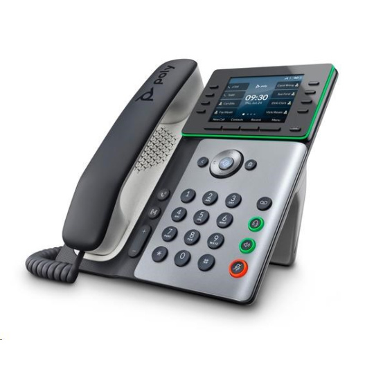 | Audio | Poly HD Voice; Technologie Poly Acoustic Clarity zajišťuje plně duplexní hovory a potlačuje akustickou ozvěnu i okolní šum; Technologie Poly Acoustic Fence potlačuje okolní hluk při použití sluchátka nebo kabelové náhlavní soupravy; Technologie Poly NoiseBlockAI odstraňuje většinu okolního hluku při používání konferenčního reproduktoru; Aplikace Poly Computer Audio Connector nainstalovaná v počítači (pouze Windows) umožňuje vybrat telefon pro zvukový vstup a výstup počítače a použít s počítačovými aplikacemi sluchátka, volitelné náhlavní soupravy a handsfree hlasitého odposlechu; Širokopásmový zvuk TIA-920, v souladu s typem 1 (plně duplexní IEEE 1329); Individuální nastavení hlasitosti s vizuální zpětnou vazbou pro každou zvukovou cestu; Detekce hlasové aktivity; Komfortní tvorba hluku; Generování tónů DTMF (RFC 2833 a v pásmu); Přenos zvukových paketů s nízkým zpožděním; Adaptivní paměti pro vyrovnání zpoždění |