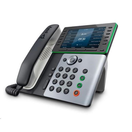 | Audio | Poly HD Voice; Technologie Poly Acoustic Clarity zajišťuje plně duplexní hovory a potlačuje akustickou ozvěnu i okolní šum; Technologie Poly Acoustic Fence potlačuje okolní hluk při použití sluchátka nebo kabelové náhlavní soupravy; Technologie Poly NoiseBlockAI odstraňuje většinu okolního hluku při používání konferenčního reproduktoru; Aplikace Poly Computer Audio Connector nainstalovaná v počítači (pouze Windows) umožňuje vybrat telefon pro zvukový vstup a výstup počítače a použít s počítačovými aplikacemi sluchátka, volitelné náhlavní soupravy a handsfree hlasitého odposlechu; Design s vylepšenými basy; Širokopásmový zvuk TIA-920, v souladu s typem 1 (plně duplexní IEEE 1329); Individuální nastavení hlasitosti s vizuální zpětnou vazbou pro každou zvukovou cestu; Detekce hlasové aktivity; Komfortní tvorba hluku; Generování tónů DTMF (RFC 2833 a v pásmu); Přenos zvukových paketů s nízkým zpožděním; Adaptivní paměti pro vyrovnání zpoždění |