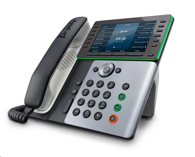 | Audio | Poly HD Voice; Technologie Poly Acoustic Clarity zajišťuje plně duplexní hovory a potlačuje akustickou ozvěnu i okolní šum; Technologie Poly Acoustic Fence potlačuje okolní hluk při použití sluchátka nebo kabelové náhlavní soupravy; Technologie Poly NoiseBlockAI odstraňuje většinu okolního hluku při používání konferenčního reproduktoru; Aplikace Poly Computer Audio Connector nainstalovaná v počítači (pouze Windows) umožňuje vybrat telefon pro zvukový vstup a výstup počítače a použít s počítačovými aplikacemi sluchátka, volitelné náhlavní soupravy a handsfree hlasitého odposlechu; Design s vylepšenými basy; Širokopásmový zvuk TIA-920, v souladu s typem 1 (plně duplexní IEEE 1329); Individuální nastavení hlasitosti s vizuální zpětnou vazbou pro každou zvukovou cestu; Detekce hlasové aktivity; Komfortní tvorba hluku; Generování tónů DTMF (RFC 2833 a v pásmu); Přenos zvukových paketů s nízkým zpožděním; Adaptivní paměti pro vyrovnání zpoždění |