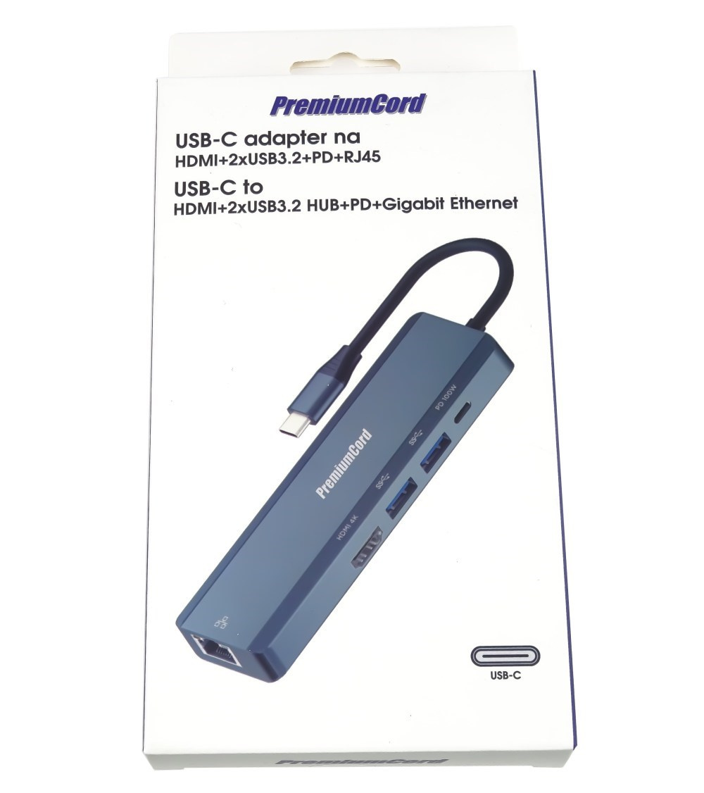 PremiumCord USB-C na HDMI + 2x USB3.2 + PD 100W+ RJ45 10/100/1000Mbps adaptér
